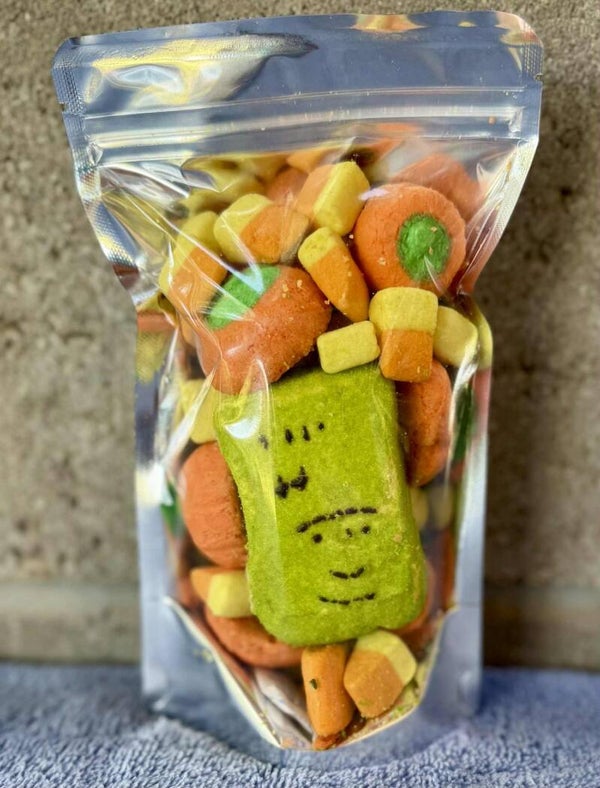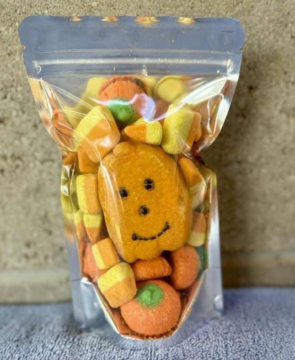 Scare up some sweetness with Malloween Krunch! This spooky-season mashup combines a giant Peep, marshmallow candy corn, and mellowcreme pumpkins—freeze-dried to airy perfection and infuzed for a grown-up twist. Each bite is fluffy, krunchy, and bursting with nostalgic fall flavor.